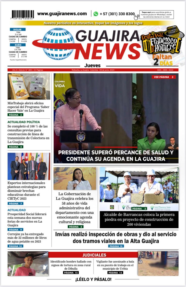 Actualidad Agitado y con noticias alentadoras para La Guajira: así fue el segundo día del presidente Gustavo Petro en la península Leer Más» 28 junio, 2023 No hay comentarios