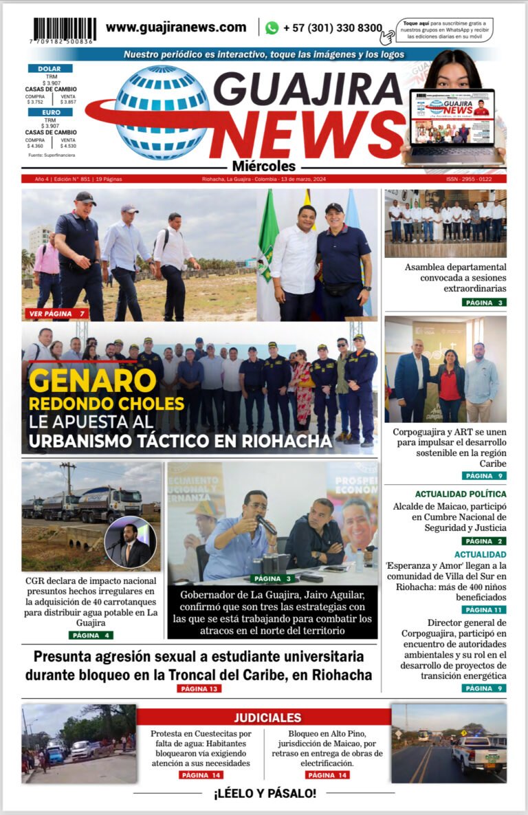 Actualidad Secretario de Gobierno del departamento ofreció $20 millones de recompensa para dar con el paradero de responsables de ataque a mujer en cercanías de Uniguajira Leer Más» 14 marzo, 2024 No hay comentarios