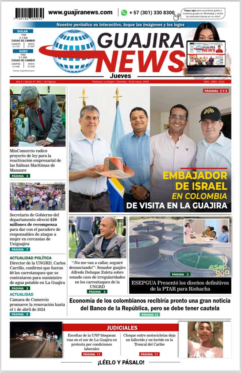 Actualidad Director de Corpoguajira, Samuel Lanao, sostuvo encuentro con Embajador de Israel en Colombia Leer Más» 14 marzo, 2024 No hay comentarios
