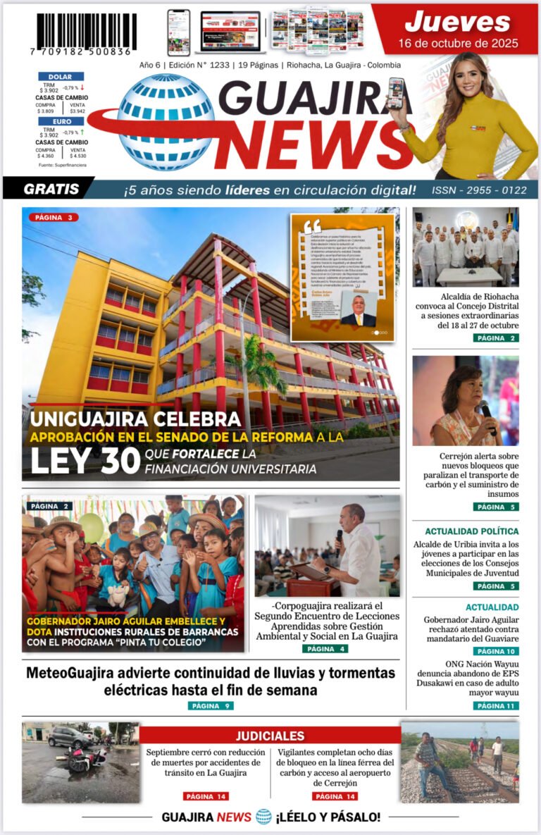 Actualidad MeteoGuajira advierte continuidad de lluvias y tormentas eléctricas hasta el fin de semana Leer Más» 16 octubre, 2025 No hay comentarios