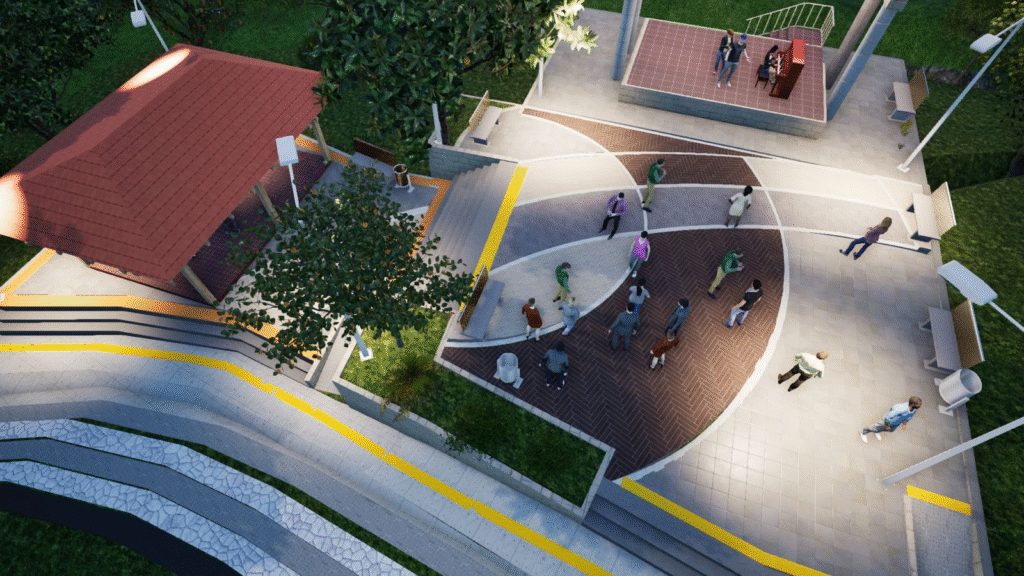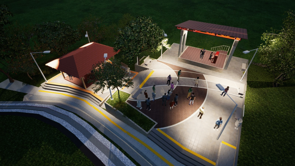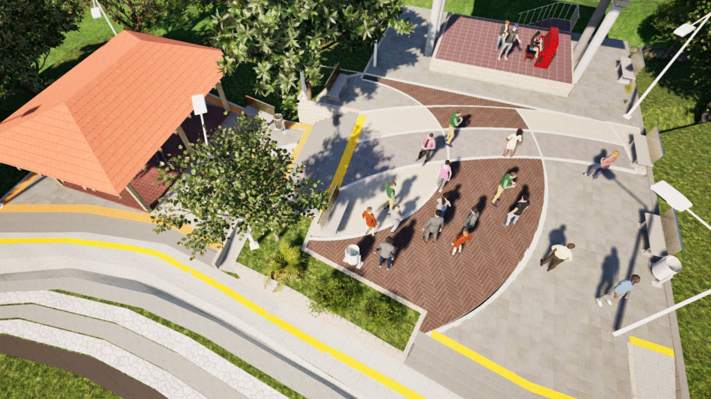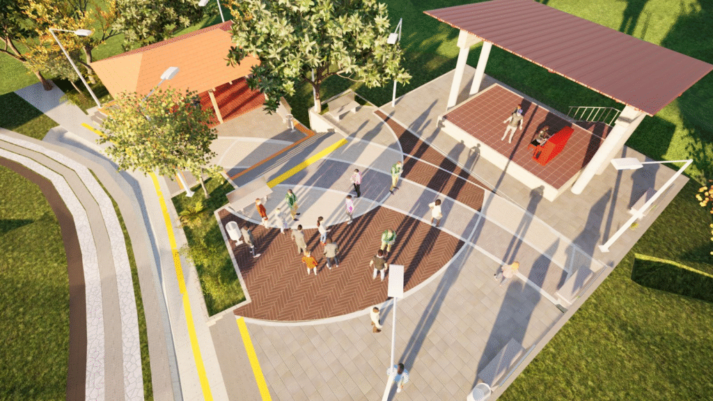El proyecto contempla la construcción de una moderna tarima, una amplia plazoleta y un kiosco comunitario, destinados a fortalecer la participación ciudadana y consolidar un lugar de uso común al servicio de toda la comunidad. Estos espacios permitirán el desarrollo de eventos culturales y religiosos, promoverán la integración ciudadana durante todo el año y servirán como escenario principal en las festividades decembrinas.