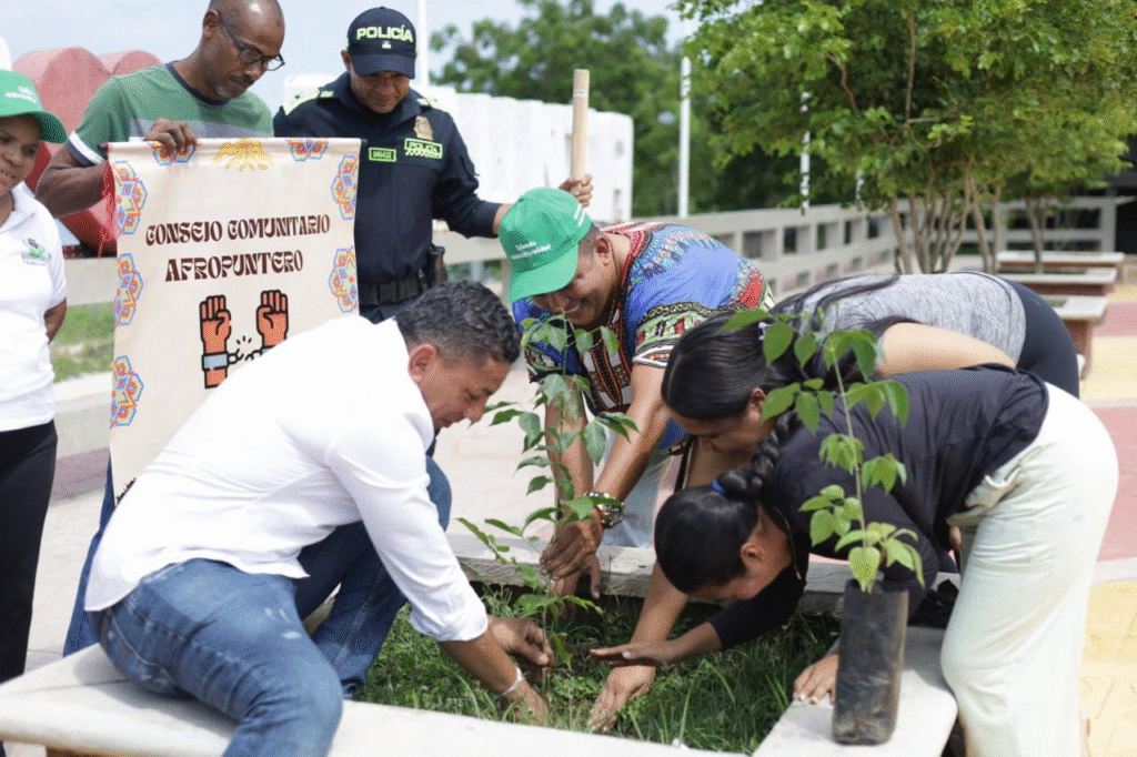 Recientemente, la jornada llegó al corregimiento de La Punta de los Remedios, en el municipio de Dibulla, donde se sembraron 200 árboles, entre ellos especies maderables como Corazón fino y Yaguaro, así como frutales como Mango y Níspero.