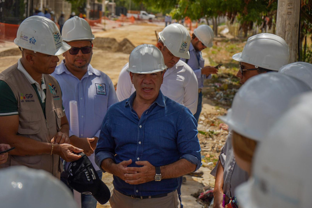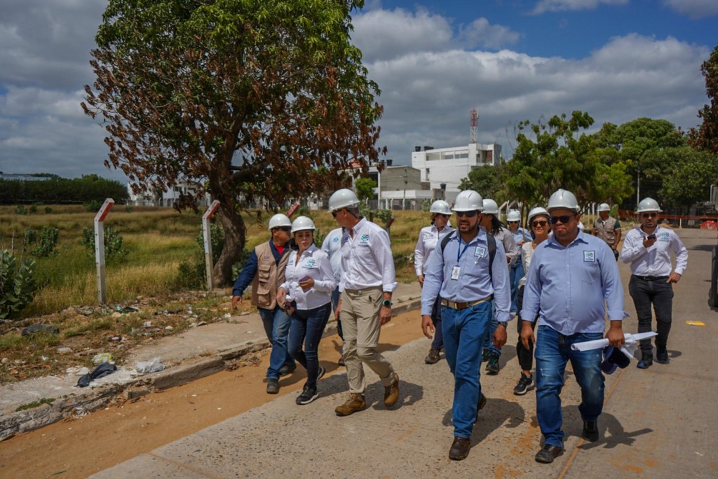 Para conocer de cerca los avances del 72,24 % en las obras que mejoran el servicio de agua potable y saneamiento básico en barrios vulnerables de Riohacha, representantes del Banco Interamericano de Desarrollo (BID), el Ministerio de Vivienda y la Embajada de Suiza –COSUDE- visitaron la ciudad y recorrieron varios puntos de los sectores intervenidos como: Simón Bolívar y Barrio La Loma para revisar las garantías socioambientales que se están implementando con los contratistas de obra de la mano de la Gerencia Integral del Proyecto -GIP- quien hace de gestor entre todos los entes para lograr consolidar las obras.