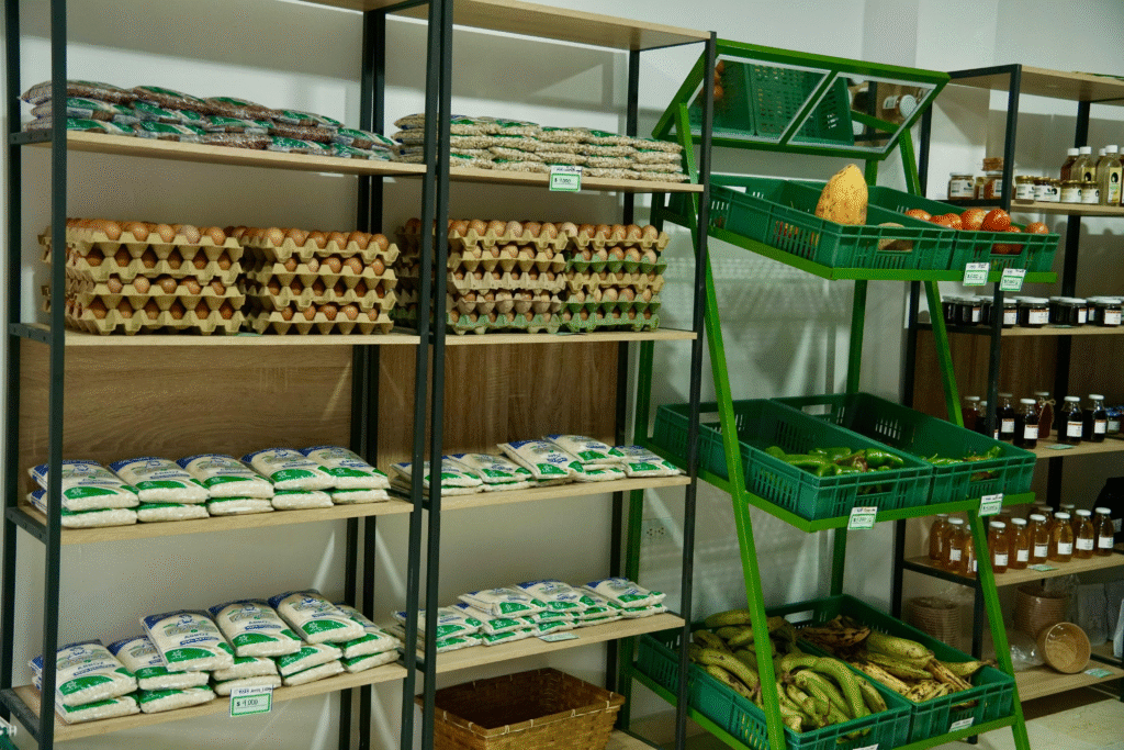 En la tienda se encuentran alimentos frescos como frutas, verduras y productos de la canasta básica, elaborados por campesinos y pequeños productores guajiros. Esta iniciativa nace en el marco de la estrategia de compras públicas locales, que busca que los recursos invertidos en programas sociales beneficien directamente a la economía del territorio.