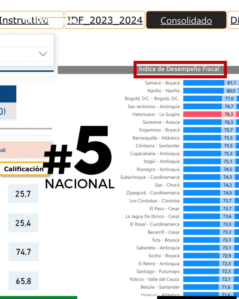 Hatonuevo se posiciona en el top 5 del ranking nacional y 1 departamental en Índice de Desempeño Fiscal