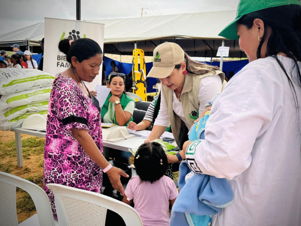 Familias pertenecientes a la comunidad wayuu del asentamiento Sector Esperanza, en el municipio de Uribia, La Guajira, recibieron atención en protección y nutrición por parte de Bienestar Familiar, en el marco de la misión médica y humanitaria «Unidos por la Salud de Uribia». Durante la jornada, se brindaron valoraciones nutricionales, entrega de alimentos con alto valor nutricional (Bienestarina Más Nuestra), activación de rutas para la protección de derechos e intervención de la Defensoría de Familia.