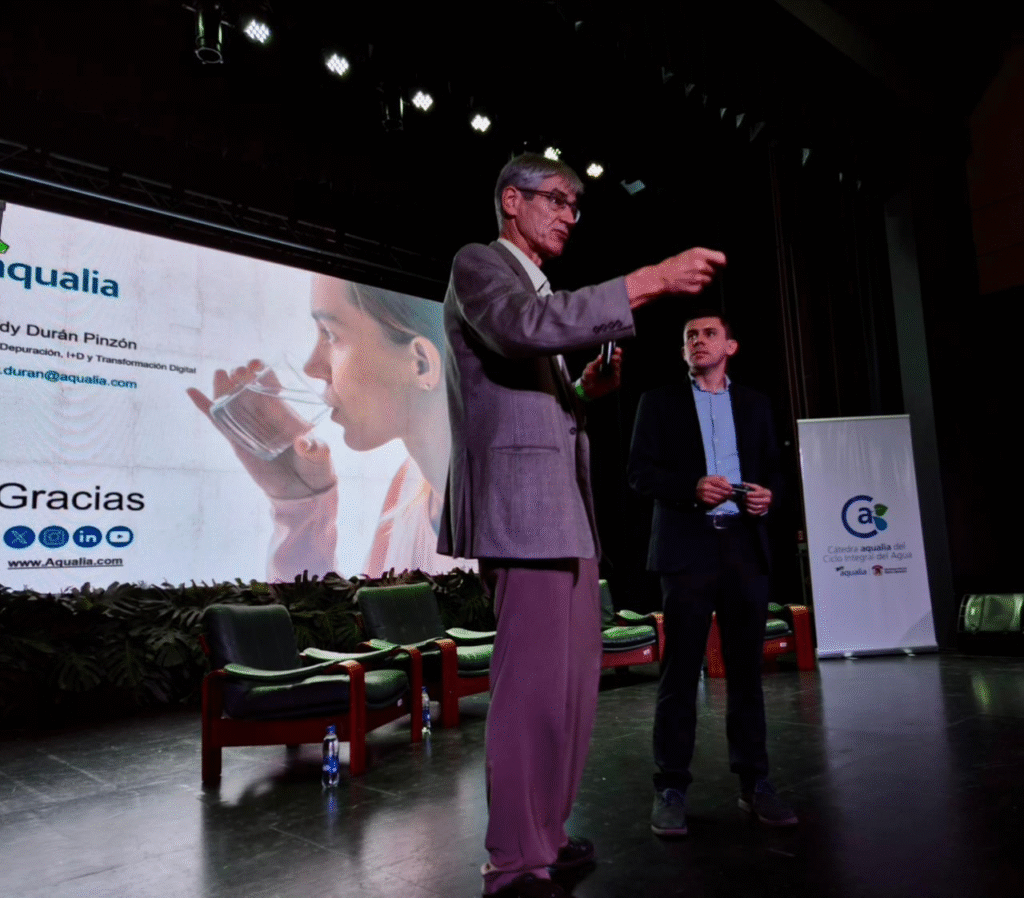 Freddy Durán, jefe de Depuración, I+D y Transformación Digital de Aqualia Colombia, participó junto a Dilia Gómez, directora del Observatorio de Sostenibilidad y Derechos Humanos de la Universidad Militar Nueva Granada, en la presentación de la Cátedra Aqualia, una iniciativa académica que promueve la formación, la investigación y la transferencia de conocimiento sobre la gestión del ciclo integral del agua.