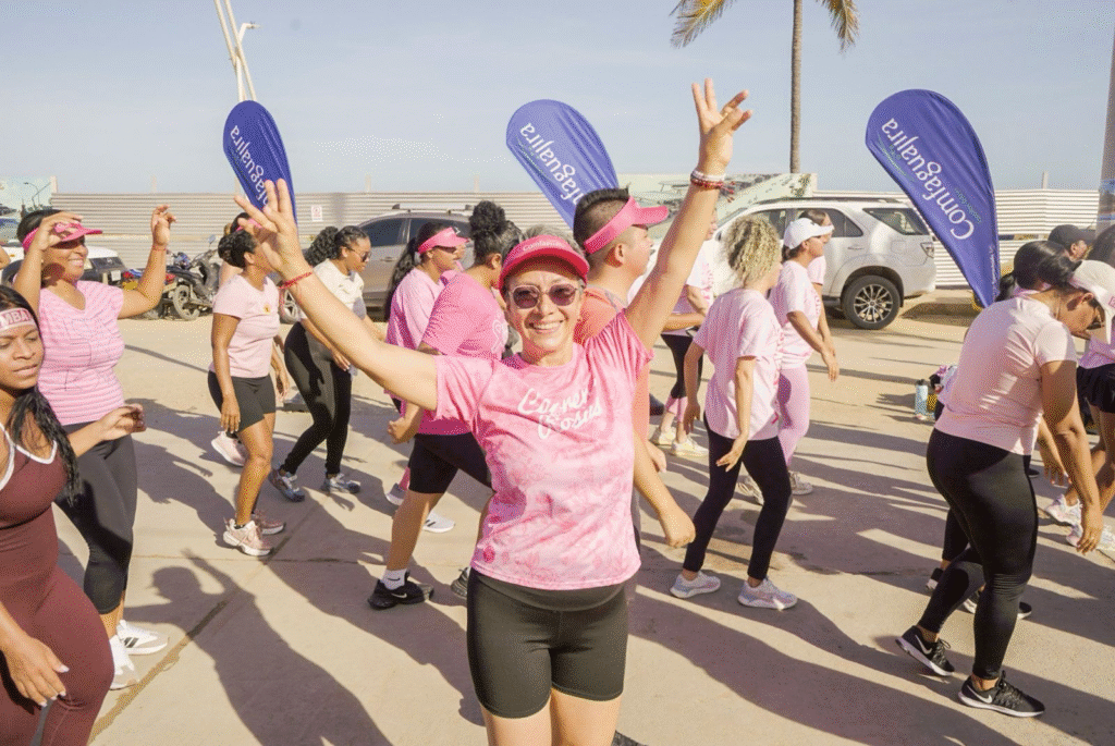 Más allá del baile, la Rumba Rosa fue una invitación a reflexionar sobre la importancia de cuidar la salud. En este sentido, Carmen Uribe Cardona, sobreviviente de cáncer de mama, compartió su testimonio y motivó a las asistentes a realizarse los controles oportunos: “La gente relaciona el cáncer con la muerte, y la verdad, para mí, el cáncer es vida, porque es en este proceso donde se fortalecen más los vínculos familiares.”