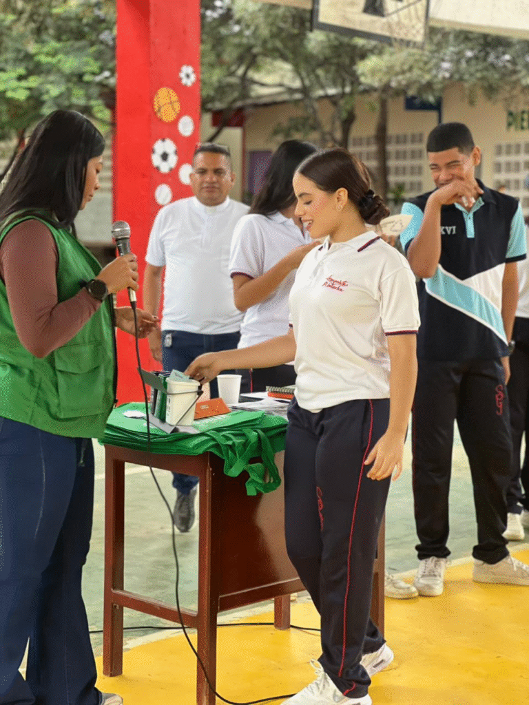 Durante la actividad, los jóvenes participaron en espacios de reflexión y aprendizaje sobre el manejo adecuado de residuos sólidos, los residuos posconsumo y la importancia de adoptar hábitos sostenibles como parte de la vida cotidiana.