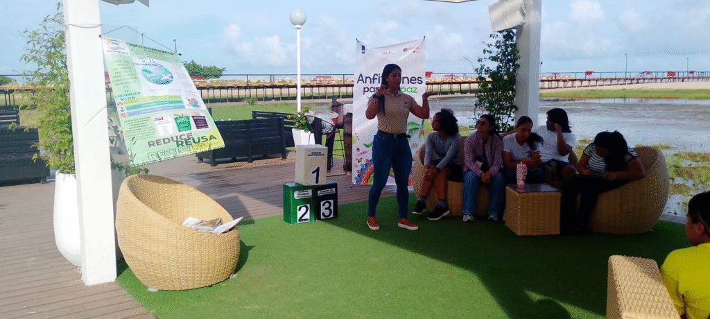 En atención a la solicitud del programa Anfitriones para la Paz de Conexión Colombia, Corpoguajira desarrolló en Riohacha un taller sobre manejo de residuos sólidos, con el propósito de promover prácticas responsables y fortalecer la conciencia ecológica entre los jóvenes participantes.