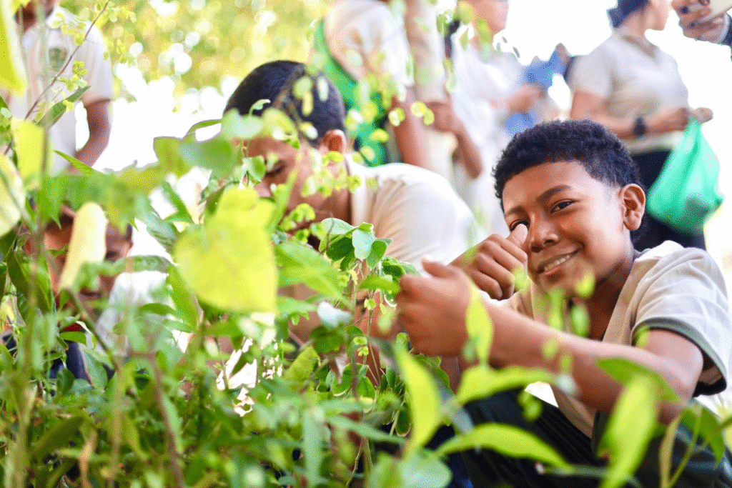 Durante la actividad, los estudiantes, junto con el voluntariado ambiental de Guaymaral y jóvenes del programa Anfitriones para la Paz de Conexión Colombia, participaron en la siembra de especies frutales como mango y limón, además de especies forestales nativas entre las que se destacan puy, roble y orejero, fundamentales para la restauración del paisaje, la recuperación de servicios ecosistémicos y la creación de zonas de sombra y hábitat para la fauna local.