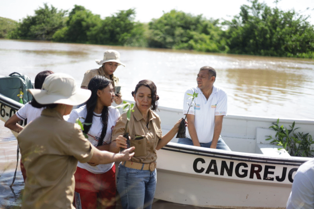 Corpoguajira y los estudiantes de la Institución Educativa Livio Reginaldo Fischione sembraron 300 plántulas de mangle en el sector de Cangrejito, en el distrito de Riohacha. Las plantas fueron donadas por los estudiantes, como resultado del trabajo desarrollado en el eco-vivero con huerta vertical que la Corporación entregó en 2024 a este centro educativo.