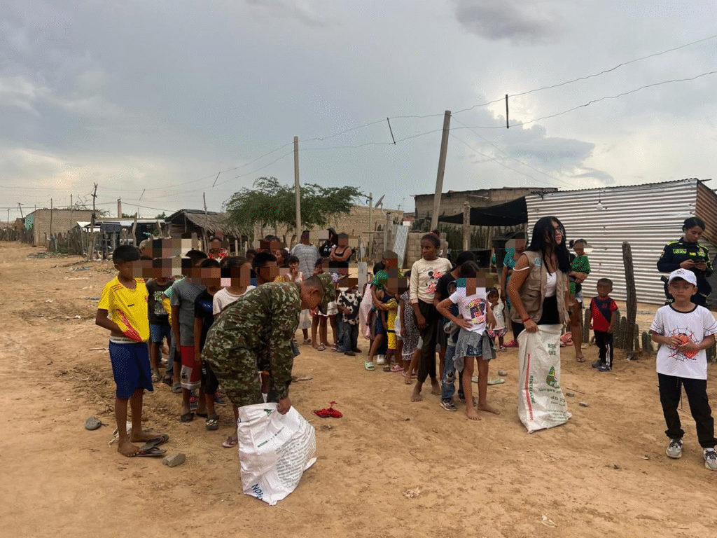 El Batallón de Ingenieros N.° 51 del Ejército Nacional adelantó una jornada social en el barrio La Donación del municipio de Uribia, La Guajira, con el apoyo de la Policía Nacional y la Secretaría de Salud Municipal.