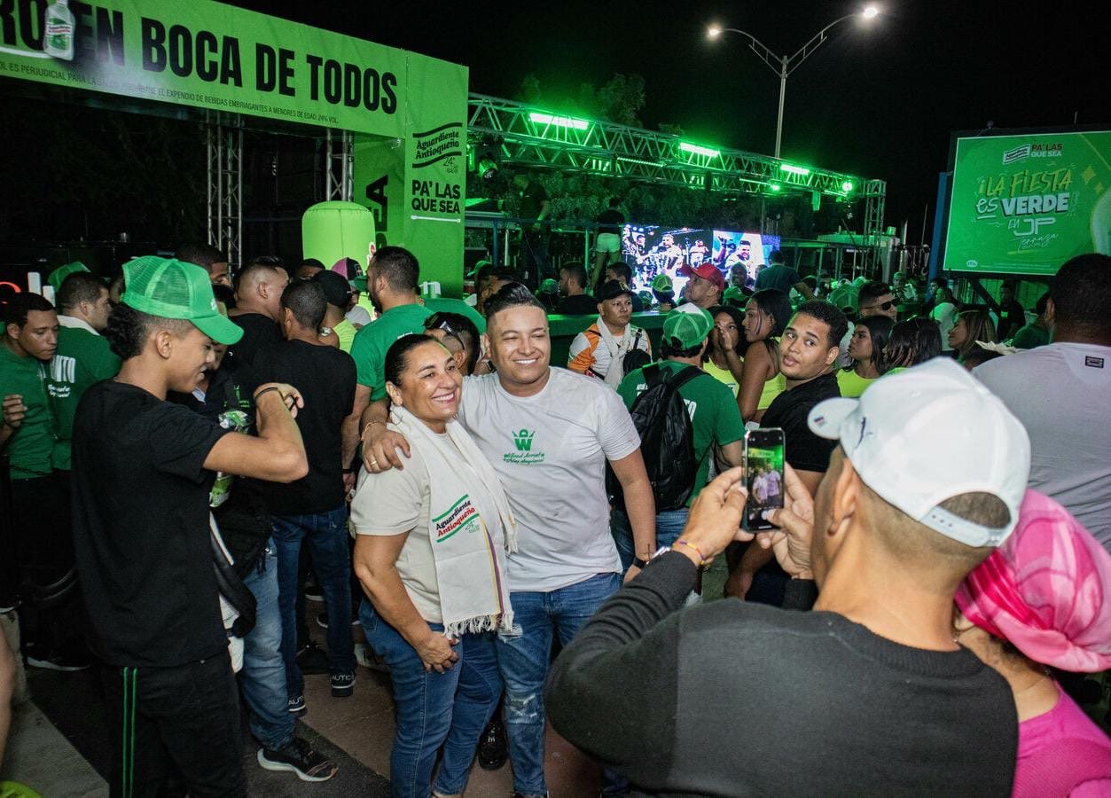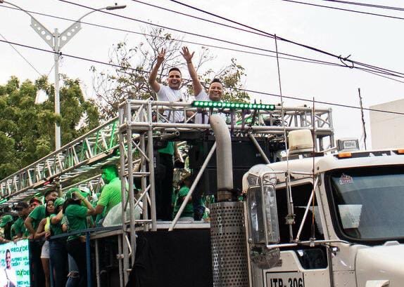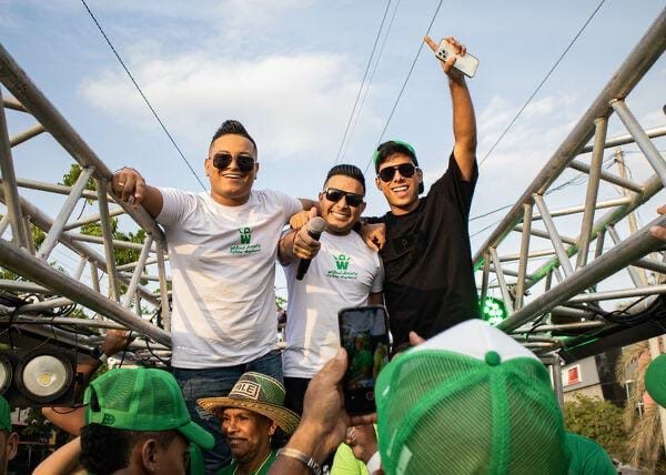 Wilfred y Delay estuvieron acompañados de sus familias, amigos, conocidos y amantes de la música vallenata, quienes a bordo de una mula, camionetas, motos, cuatrimotos y automóviles hicieron una gran mancha verde durante el recorrido que inició en la salida hacia Santa Marta y terminó en la avenida Circunvalar.