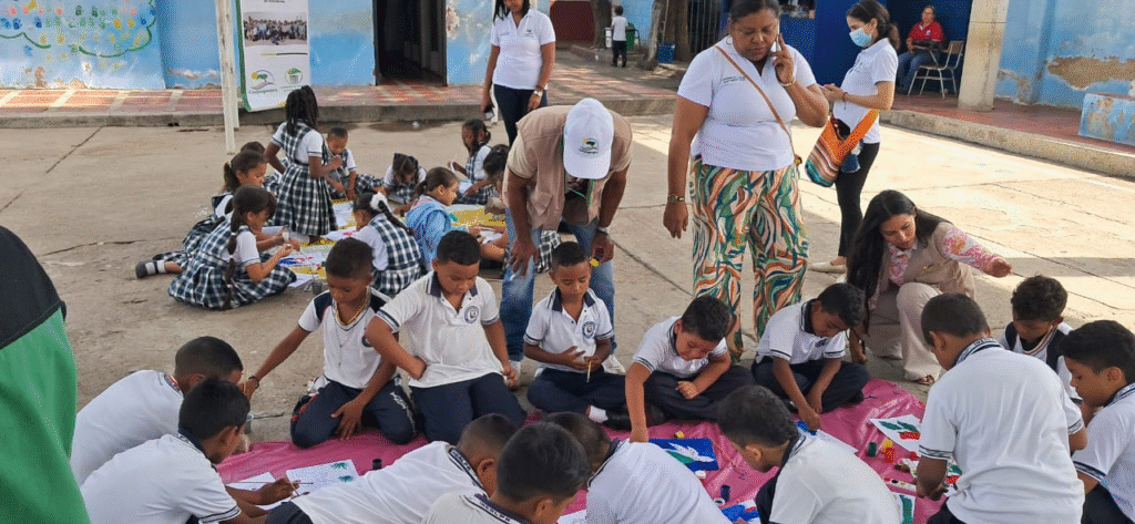 La actividad se llevó a cabo con estudiantes de segundo grado de primaria de la Institución Educativa Almirante Padilla, sede Las Américas No. 3, en el marco del proyecto “Implementación de Estrategias de Educación y Gestión Ambiental en la zona de influencia del Centro Histórico y Nuevo Centro del Distrito Especial, Turístico y Cultural de Riohacha”.