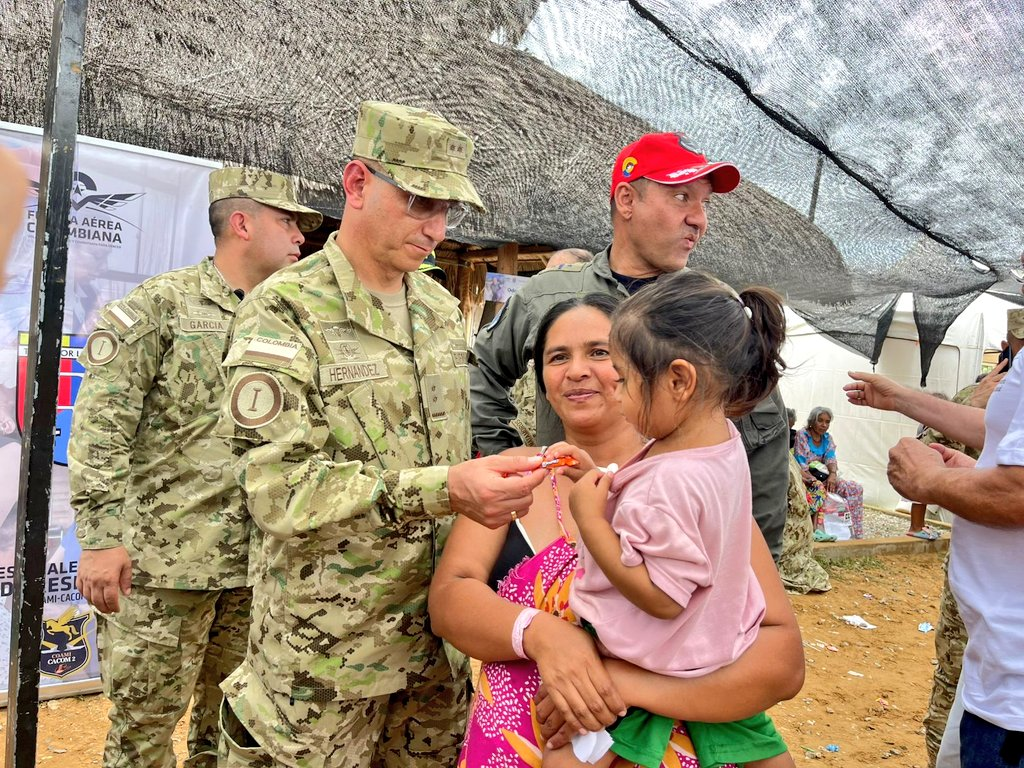 En Uribia, norte de La Guajira, miembros de la Fuerza Aérea Colombiana y del Ejército Nacional participaron activamente en diversas actividades sociales desarrolladas en comunidades indígenas del territorio.