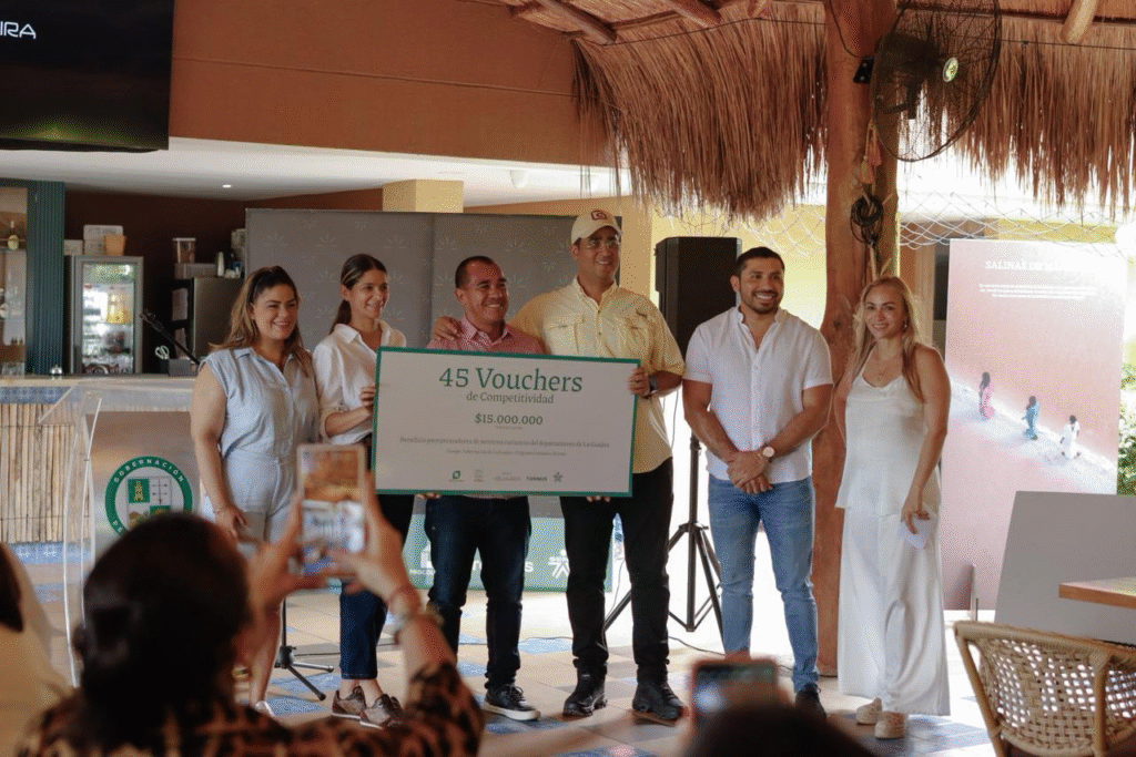 Durante un evento realizado en Riohacha, el gobernador Jairo Aguilar Deluque, junto al director de Turismo departamental, Rafael Zúñiga, realizaron  la entrega simbólica de los Vouchers de Innovación a 45 empresarios turísticos, seleccionados tras un proceso de formación, capacitación, certificación y evaluación por parte de un jurado experto conformado por representantes de la Universidad de La Guajira, el SENA, entre otros.
