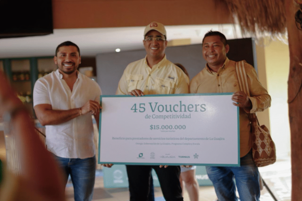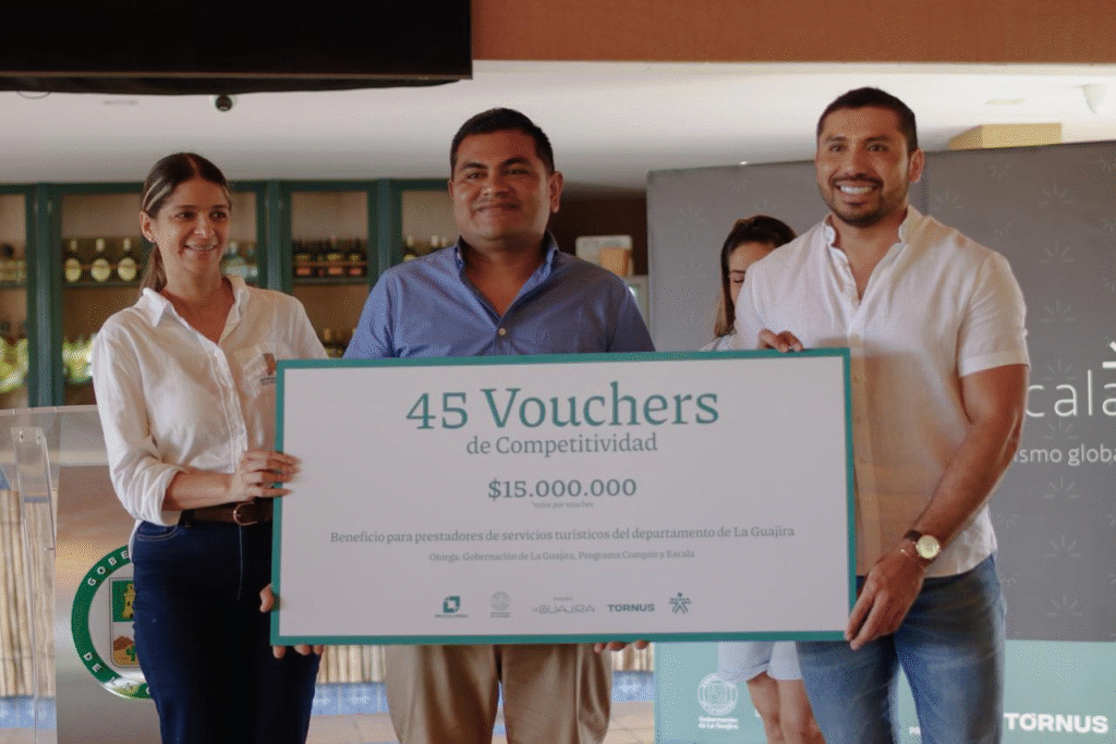 En el marco del programa Compite y Escala, la Gobernación de La Guajira, a través de la Dirección de Turismo, entregó los Vouchers de Innovación a 45 empresarios del sector turístico, reafirmando su compromiso de cumplir la palabra y fortalecer un turismo más competitivo, sostenible y con proyección internacional.