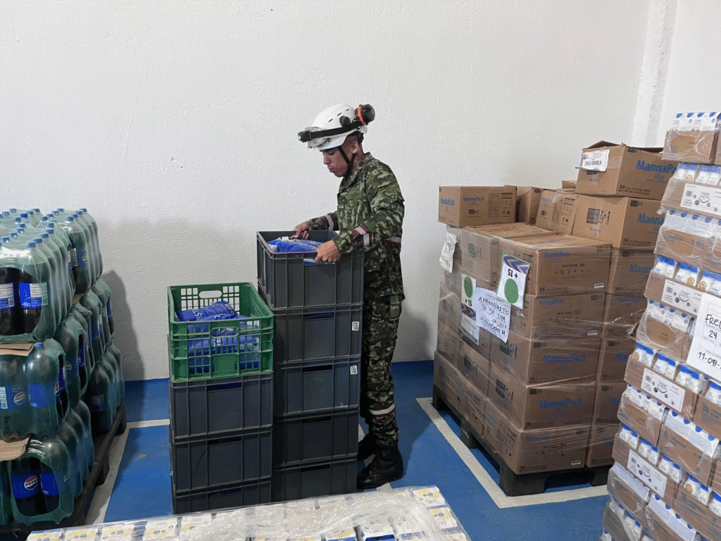 Soldados de la Brigada de Ingenieros de Atención y Prevención de Desastres realizaron una jornada de apoyo en el Banco de Alimentos de Riohacha, donde se adelantó la clasificación, separación, empaque, cargue y descargue de 1.200 kilogramos de alimentos.