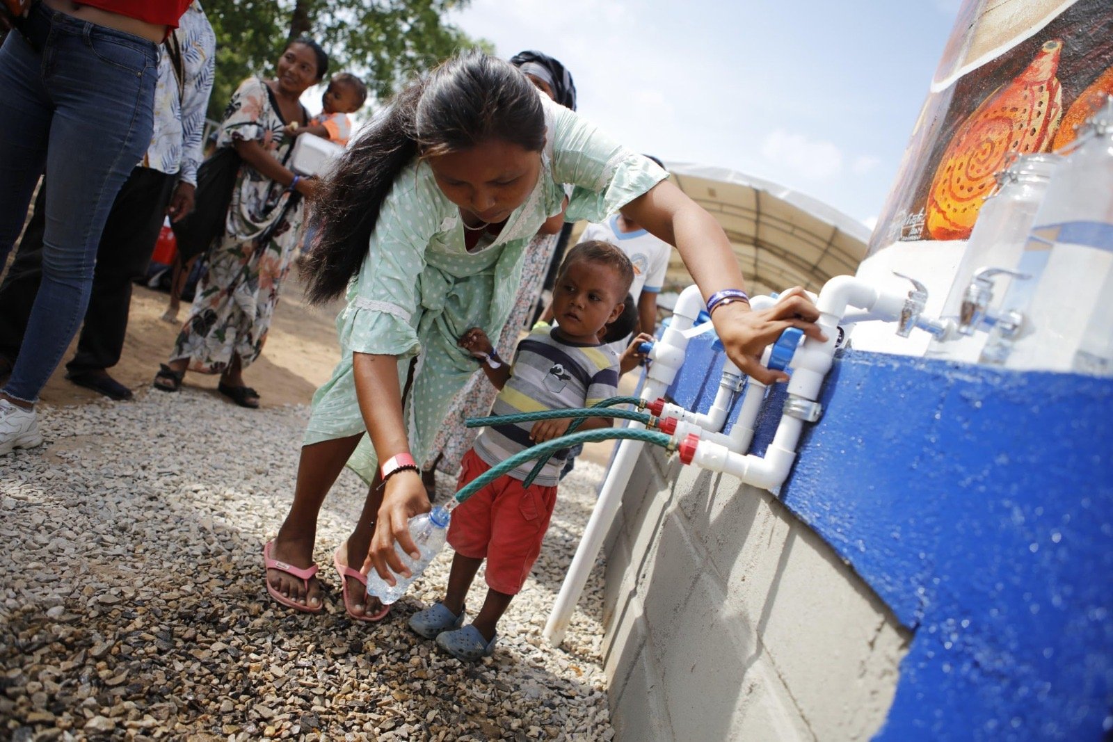 El presidente Gustavo Petro Urrego destacó la alianza público-privada que busca brindar soluciones a las comunidades de La Guajira. El anuncio lo realizó el mandatario durante la entrega por parte de ‘Misión La Guajira’ de una planta potabilizadora de agua que garantizará el suministro de agua apta para el consumo humano a las comunidades wayuu de Grasamana, Parenska 1 y Parenska 2, localizadas en el municipio de Manaure.