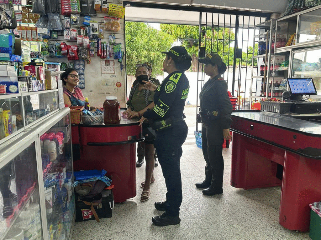 Asimismo, la Policía Comunitaria ejecuta estrategias de prevención del hurto a comercio, mediante la entrega de volantes informativos, charlas con comerciantes y empleados, y la socialización de los números del cuadrante, fortaleciendo el trabajo conjunto con la comunidad.
