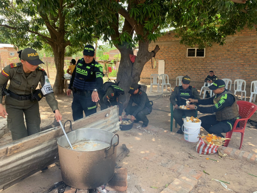 Con el corazón puesto en el servicio a la comunidad, la Policía Nacional, a través del Grupo de Policía Comunitaria y en articulación con el Grupo de Protección al Turismo, llevó a cabo la jornada ‘Olla Comunitaria’ en el barrio San Juan Bautista Forero de San Juan del Cesar.