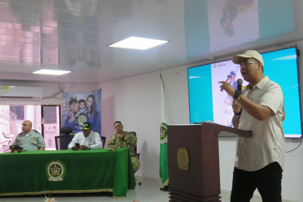 El Coronel Diego Édison Montaña Gómez, comandante del Departamento de Policía Guajira, expresó su gratitud y respeto hacia los veteranos durante su intervención en el acto.