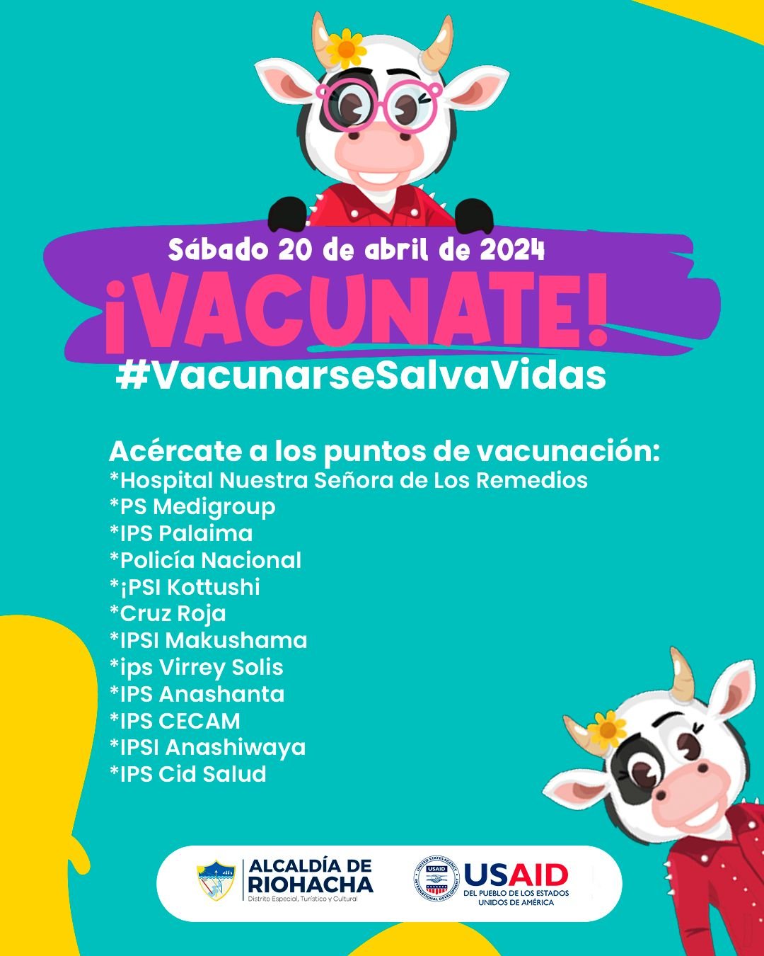 La Secretaría de Salud Distrital llevará a cabo este 20 de abril la Segunda Jornada Nacional de Vacunación 2024 en la capital de La Guajira.