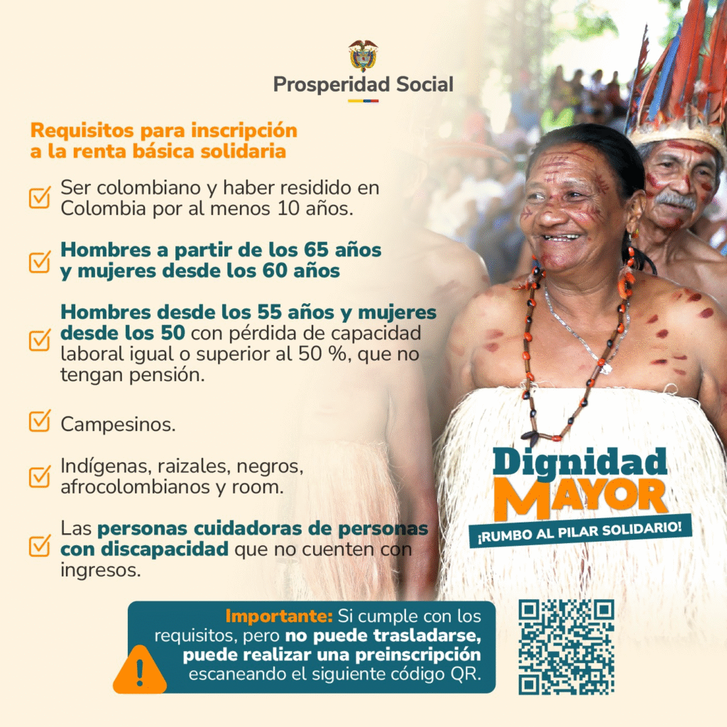 Las inscripciones están habilitadas en todo el país. Los interesados que cumplan con los requisitos deben presentar su documento de identidad de forma presencial en las gerencias regionales de Prosperidad Social, en las oficinas del adulto mayor del municipio, en las ferias de servicios o en las brigadas móviles.
