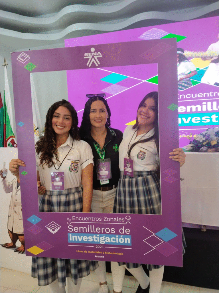 Exitosa fue la participación de la facilitadora TAI del SENA Regional La Guajira, Wendy Colmenares Suárez, junto a las aprendices del programa de Biotecnología Ambiental, Sofía Bonilla y Salomé Álvarez, en el Encuentro Nacional de Semilleros de Investigación – Línea: Materiales y Biotecnología, realizado en Arauca.