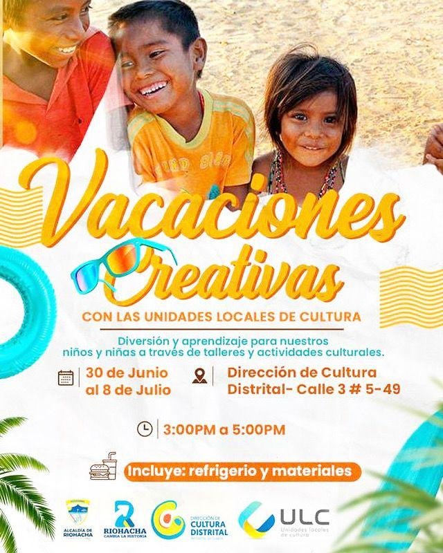 Con el propósito de introducir a los niños y niñas del Distrito de Riohacha en el arte y la cultura, y para fomentar el buen aprovechamiento del tiempo libre durante esta temporada de receso escolar, la Alcaldía Distrital, a través de la Dirección de Cultura ofrece “Vacaciones Creativas” con las Unidades Locales de Cultura.