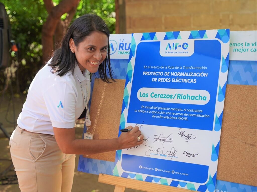 Con la presencia de autoridades locales, representantes de la comunidad y la Gerencia Territorial de Air-e se llevó a cabo la firma simbólica del contrato Prone para la normalización eléctrica del barrio Los Cerezos del Distrito de Riohacha que beneficiará a 242 familias.