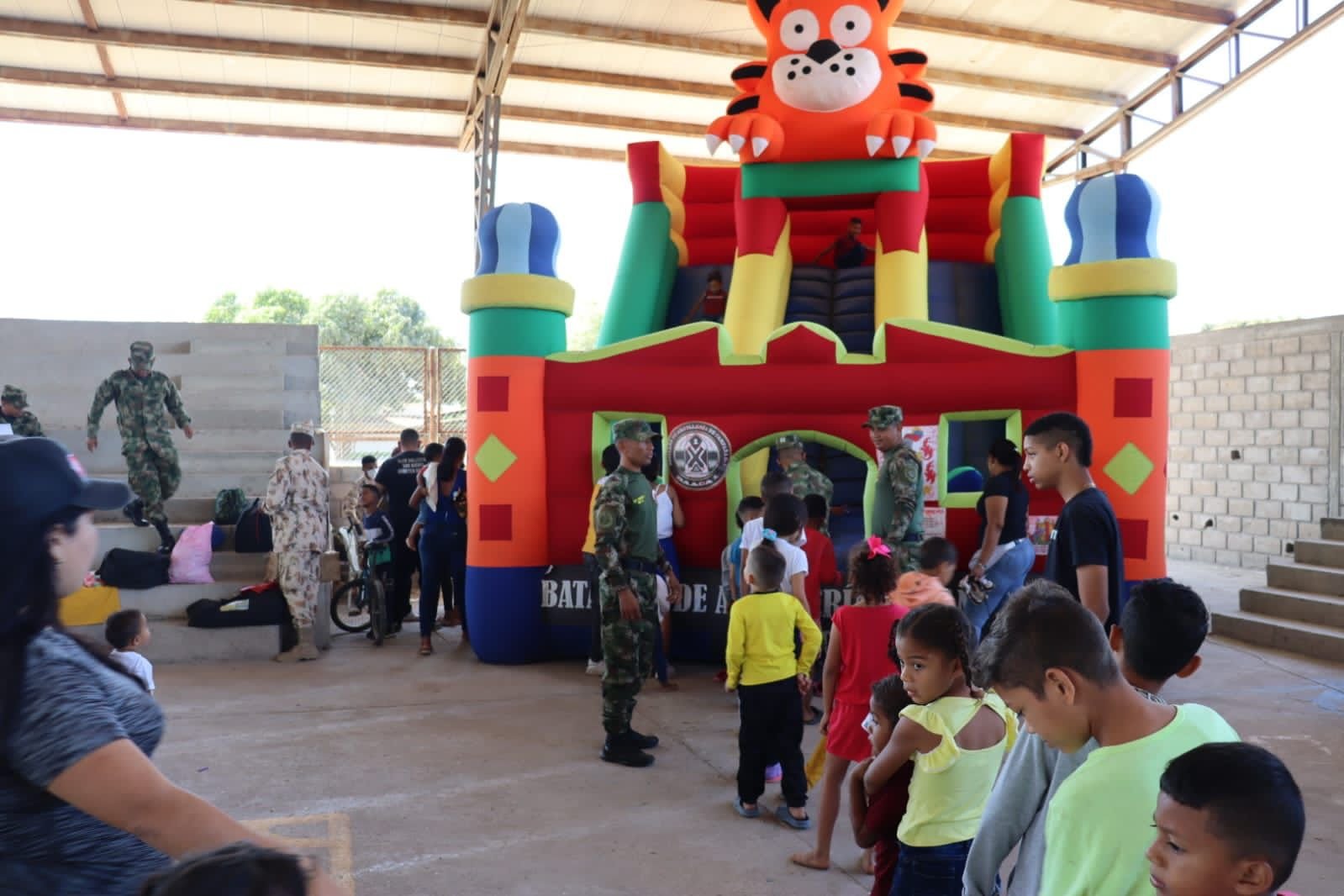 “Los niños disfrutaron de varias actividades lúdicas y recreativas, entre ellas, juegos en inflables, globos en forma de animales y pintucaritas, reflejándose en su rostro la alegría por vivir estos momentos de integración social”, informó el Ejército Nacional.