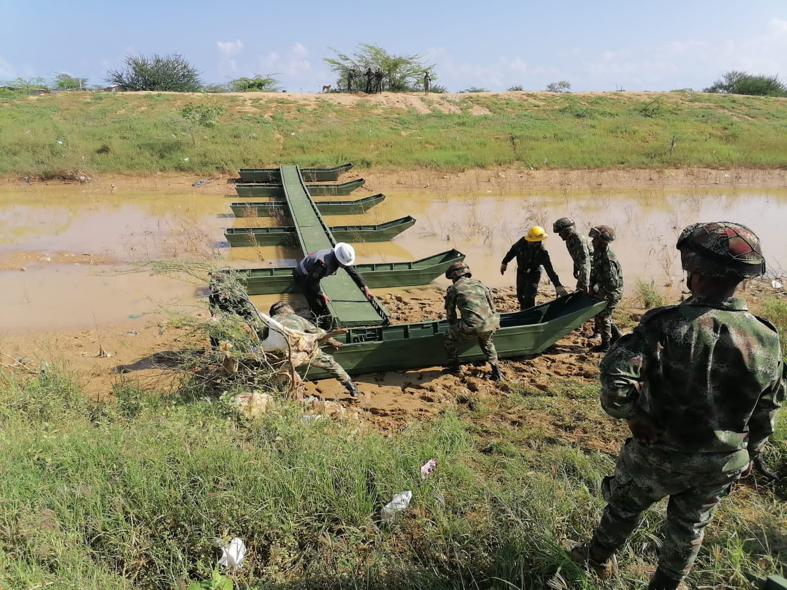 Como muestra del compromiso institucional, 22 soldados instalaron una pasarela flotante de aluminio M-38 de 21 metros de longitud, la cual permitirá que más de 3.000 habitantes de la zona rural se movilicen de manera tranquila y segura.