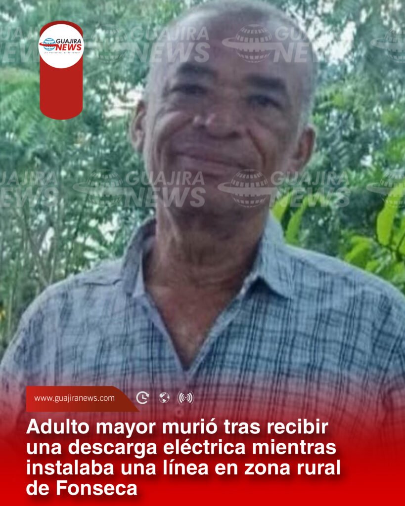 Un adulto mayor identificado como Juvenal Sarmiento Medina, de 65 años, falleció tras recibir una descarga eléctrica en hechos ocurridos la tarde del sábado en la vereda Mamonal, zona rural del municipio de Fonseca.