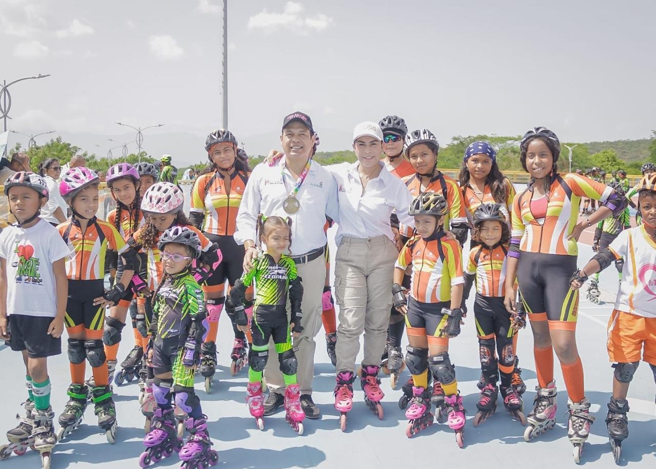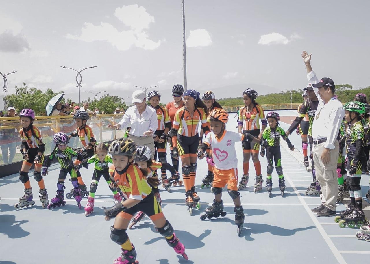 En compañía de la Primera Dama, Sandra Milena Sáenz Alba, personal de la administración municipal, contratistas, miembros de la Junta de Acción Comunal del barrio Nueva Guajira y los distintos equipos de patinaje de Hatonuevo, el burgomaestre Luis Arturo Palmezano Rivero inauguró el patinódromo Héroes del Futuro, una mega obra emblemática denominada como una de las mejores de la Región Caribe, capacitada para brindar distintos espacios para practicar disciplinas deportivas.
