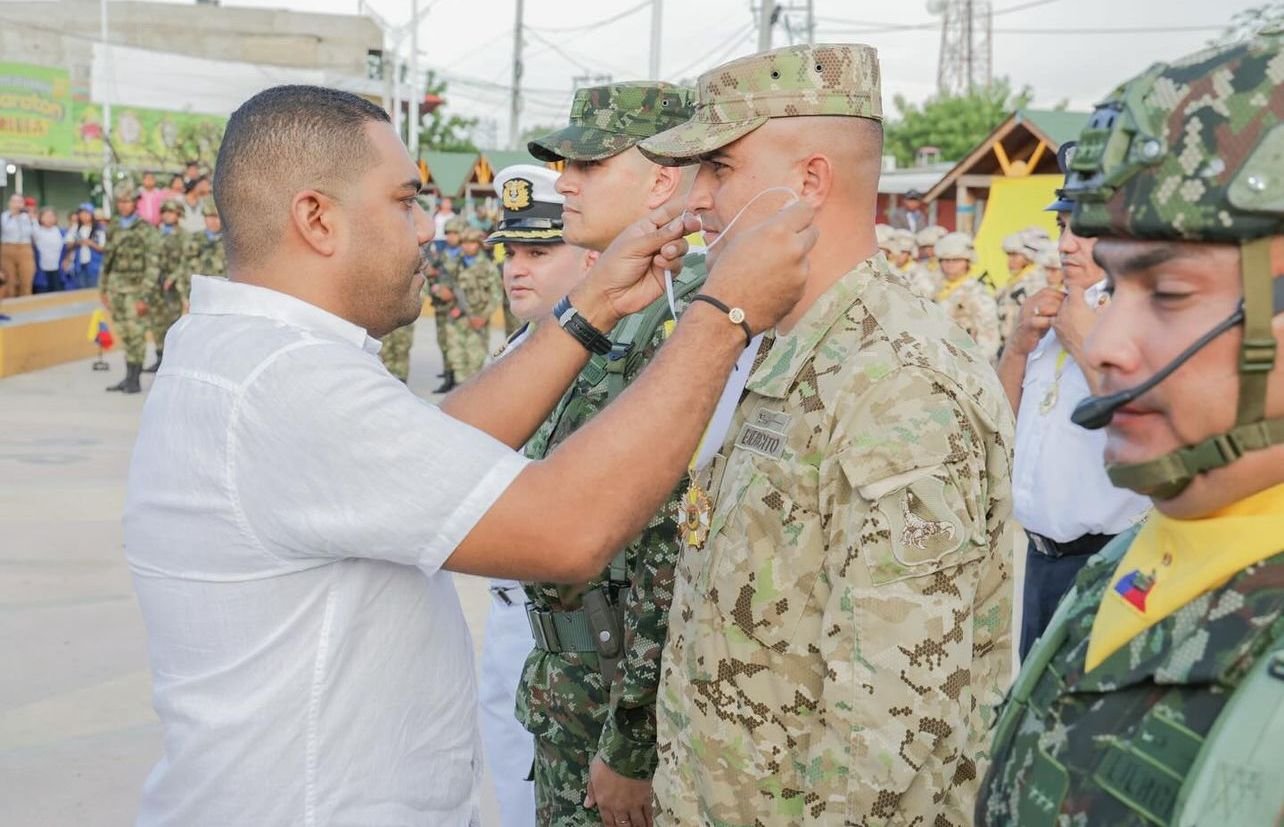 En conmemoración del bicentésimo décimo cuarto aniversario del Ejército Nacional Colombiano, el alcalde de Uribia, Jaime Luis Buitrago García, entregó la medalla honor al mérito “Eduardo Londoño Villegas” a destacados funcionarios de la Fuerza Pública. Esta distinción reconoce el gran esfuerzo, compromiso y dedicación que estos hombres han demostrado en su labor para mantener el orden público en el municipio de Uribia.
