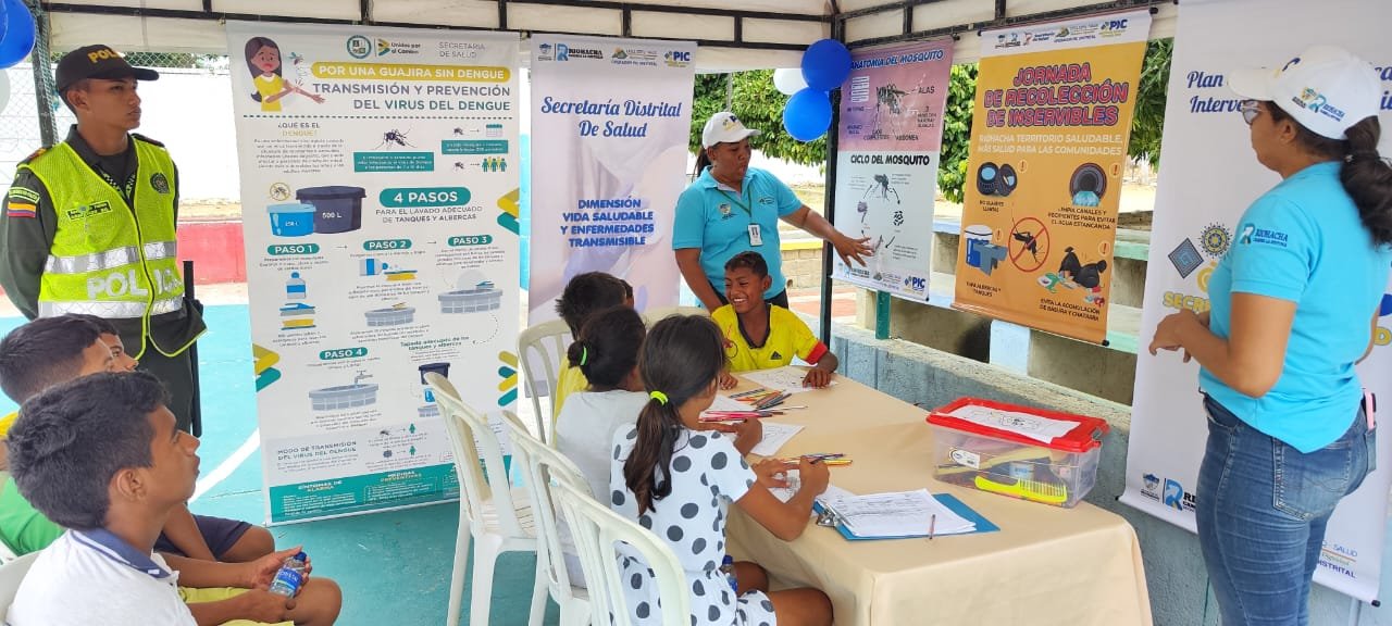 En estos sectores también se realizó la inspección de los factores de riesgos asociados al dengue, así como búsquedas activas en las comunidades, con el acompañamiento del Plan de Salud Pública de Intervenciones Colectivas del Distrito, su operador la IPSI Ezeqsalud, la Gobernación de La Guajira, Policía Nacional, Interaseo, Corpoguajira, OIM, COPRECAM y miembros de las JAC.