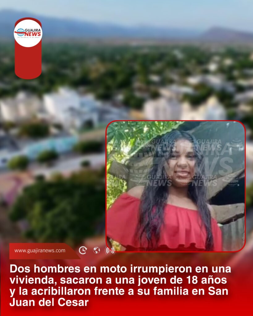 Momentos de terror se vivieron en el barrio de invasión La Esperanza, en el municipio de San Juan del Cesar, cuando una joven identificada como María Gabriela Maestre Nieves, de 18 años, fue atacada a tiros dentro de su vivienda por dos hombres armados que irrumpieron violentamente en la madrugada de este jueves.