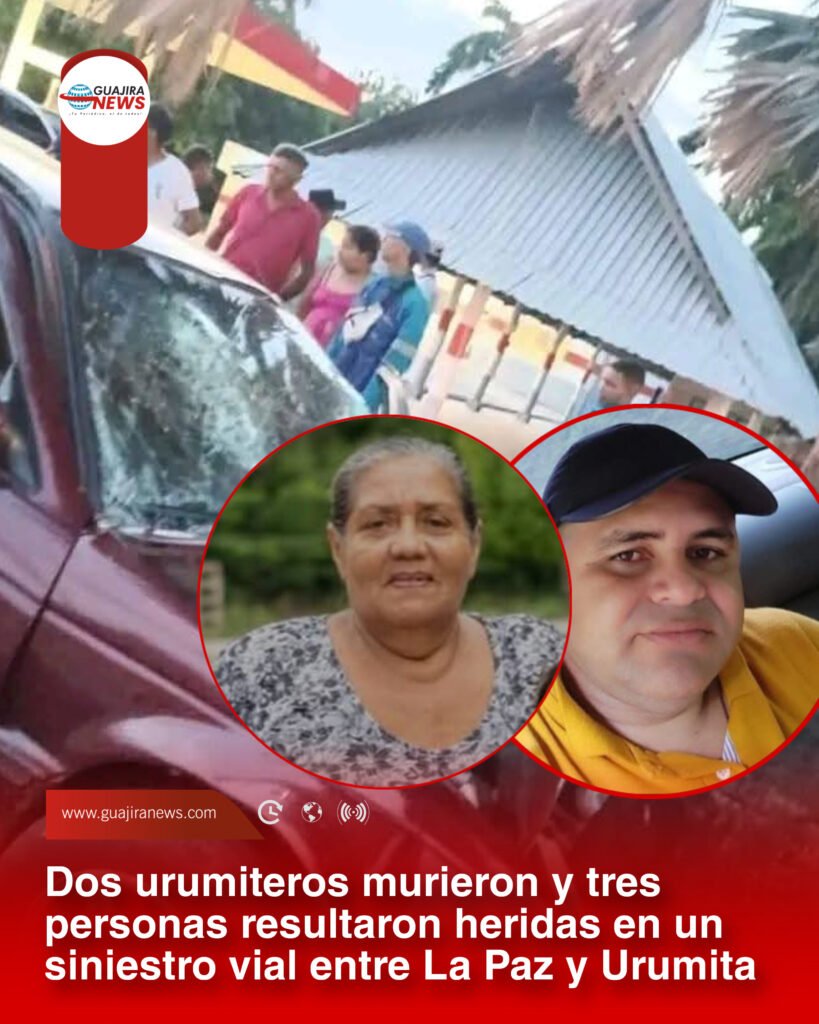 Dos personas fallecieron y tres más resultaron heridas en un siniestro vial ocurrido la tarde del miércoles 26 de noviembre en la vía que comunica al municipio de La Paz, Cesar, con Urumita, La Guajira. Las víctimas fueron identificadas como Liginia Liñán Buelvas de Fuentes, de 70 años, y Jhonatan Molina Ospino, conocido como ‘Cotero’, ambos nacidos en Urumita.