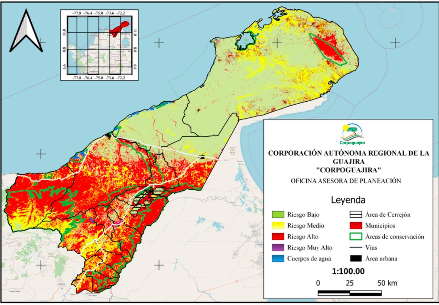 La Corporación Autónoma Regional de La Guajira (Corpoguajira), indicó que alrededor del 46% del departamento presenta un riesgo medio-alto, para la ocurrencia de incendios forestales.