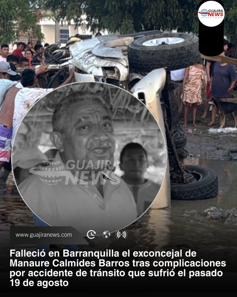 Calmides Barros Pulido, residente en su ranchería en el corregimiento de Aremasain, era reconocido en Manaure por su trayectoria política y el aprecio de la comunidad. Su fallecimiento genera consternación en el municipio y entre quienes lo conocieron en vida.