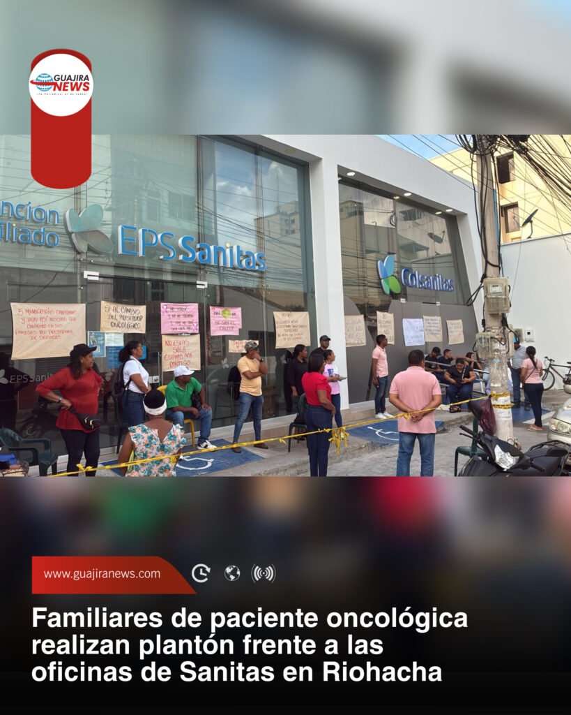 En la mañana de este viernes 19 de septiembre, familiares de una paciente con diagnóstico de cáncer de seno adelantaron un plantón a las afueras de las oficinas de atención al usuario de la EPS Sanitas en Riohacha, ubicadas en la calle 3 entre carreras 6 y 7.