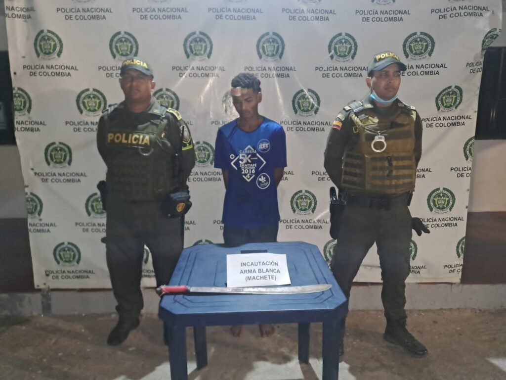 El cuadrante salió en su búsqueda y en la calle 24 con la carrera 5, barrio Rojas Pinilla, observaron un particular con las características entregadas y aun con el machete en la mano, quien trató de escaparse.