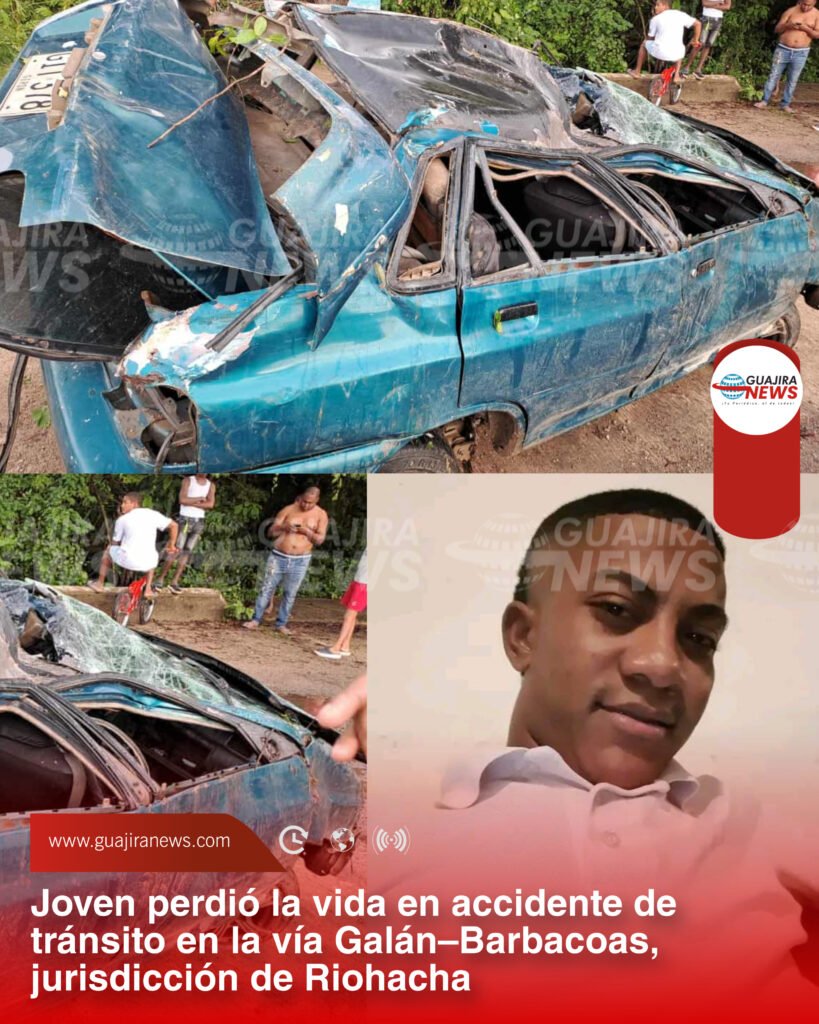 Un trágico accidente de tránsito se registró en la madrugada de este domingo en la vía que comunica a Galán con Barbacoas, zona rural del Distrito de Riohacha, donde un joven identificado como Alexander Vanegas perdió la vida de manera inmediata.