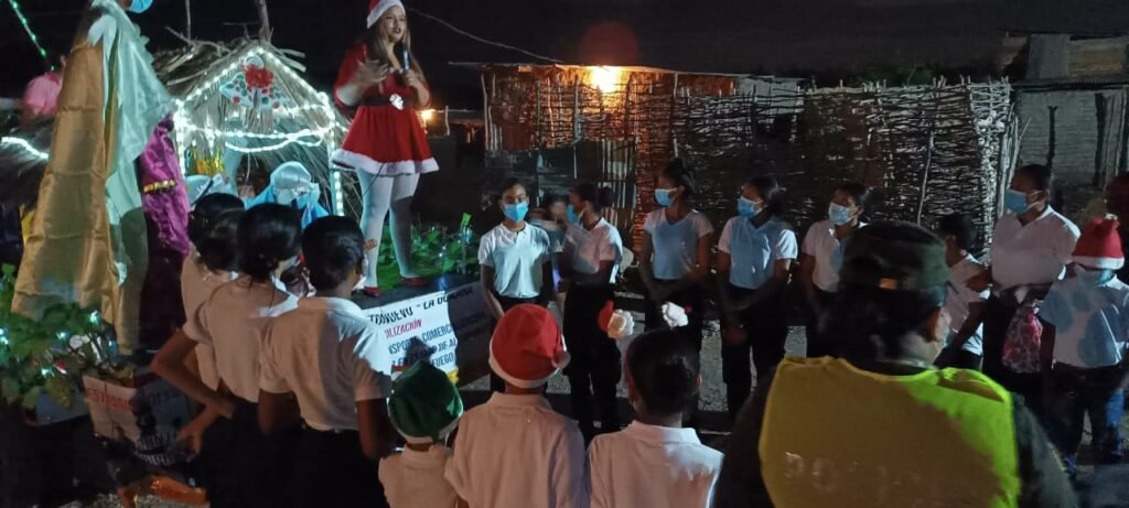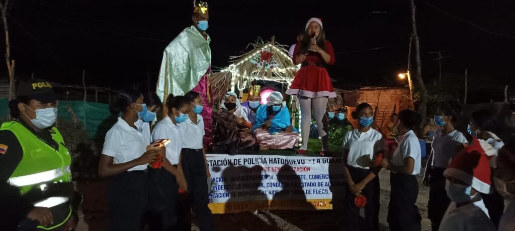 Por las tardes, los uniformados recorren las calles de ese municipio guajiro, representando los personajes de la navidad, llegando día a día a un barrio distinto rezando la novena, entregando regalos y llevando una jornada de sano esparcimiento para los niños, niñas y adolescentes.
