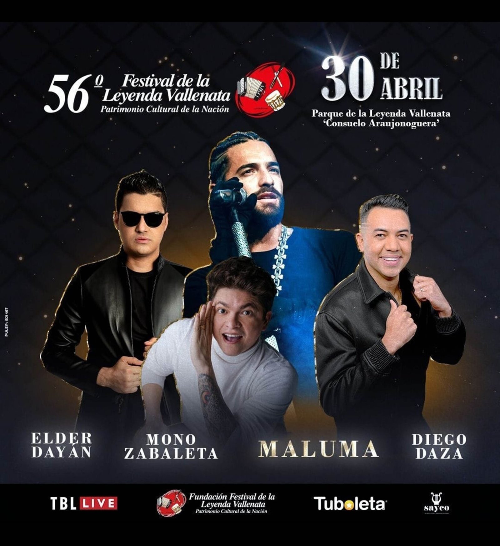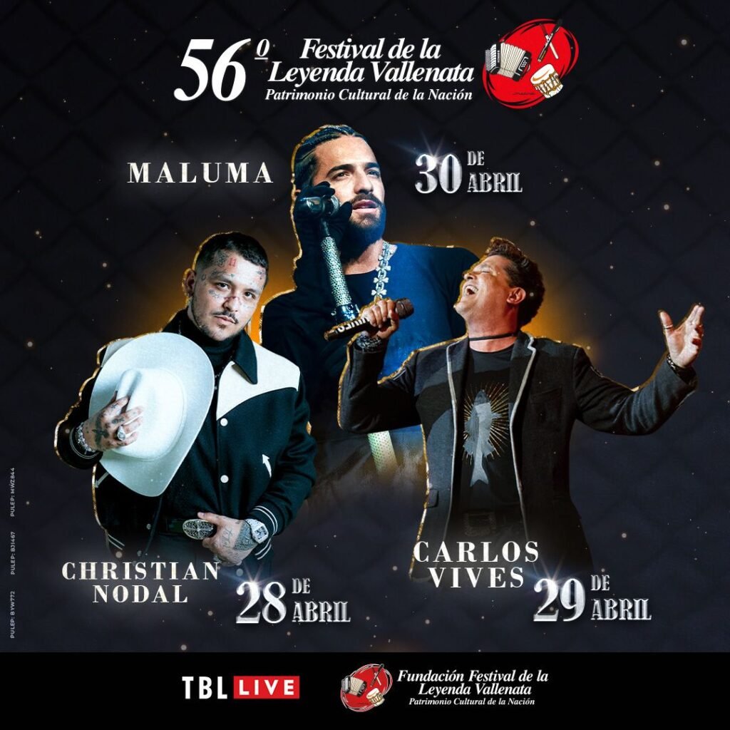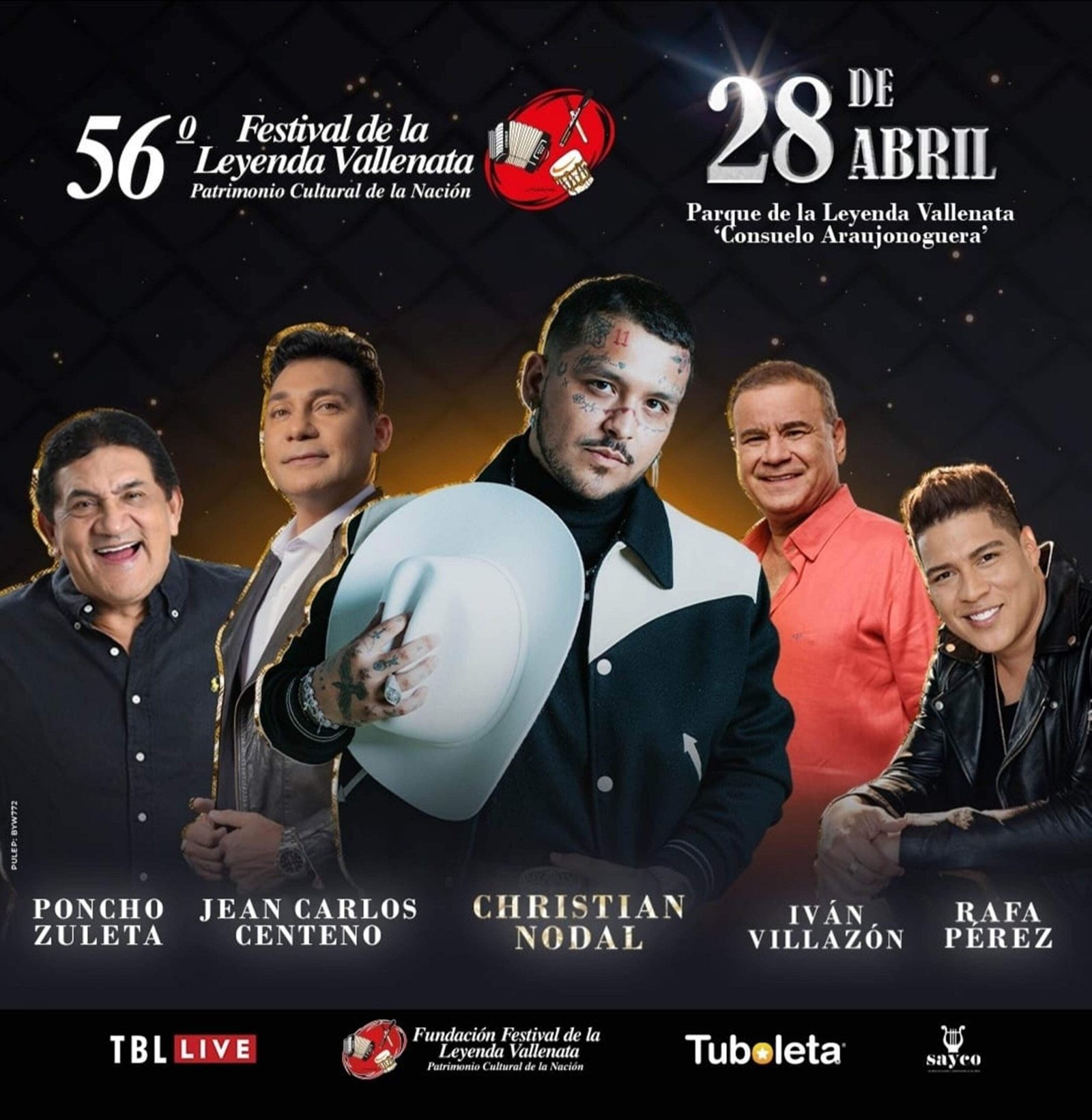 Valledupar está lista para el 56° Festival de la Leyenda Vallenata que se realizará del 26 al 30 de abril de 2023, en homenaje al juglar Luis Enrique Martínez, ‘El Pollo Vallenato’, teniendo como principales protagonistas a los distintos concursantes que van en busca de nuevas coronas en las distintas categorías, junto a los artistas internacionales Christian Nodal, Carlos Vives y Maluma, quienes al lado de nuestros exitosos artistas vallenatos presentarán un espectáculo de máxima categoría.