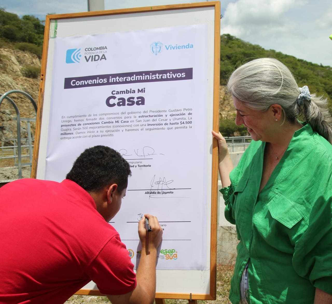 Cabe indicar que la Ministra realizó una visita a la represa del río Ranchería, donde firmó el convenio ‘Cambia Mi Casa’ y optimización del sistema de acueducto Urumita.