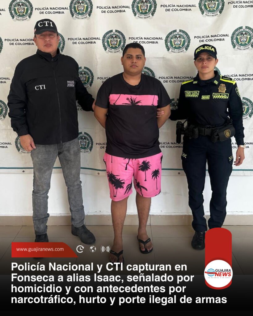 En un operativo conjunto, la Policía Nacional, a través de la Seccional de Investigación Criminal Guajira, y el Cuerpo Técnico de Investigación (CTI) de la Fiscalía General de la Nación, capturaron en el municipio de Fonseca a Isaac Andrés Álvarez Pérez, conocido como alias Isaac.
