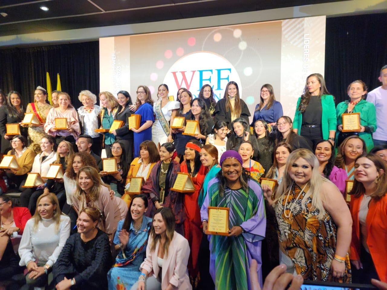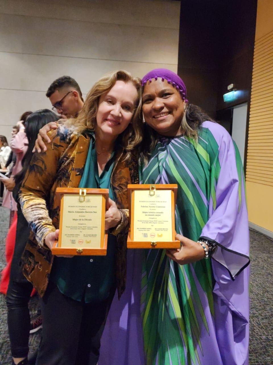 El premio fue entregado por la presidenta Global del Women Economic Forum WEF, Harbeen Arora Rai y la presidenta del Women Economic Forum WEF Latam Colombia 2023, Karen Brugés. También la acompañaron la actriz Alejandra Borrero, la exalcaldesa de Riohacha Yolima Carrillo y otras personalidades.